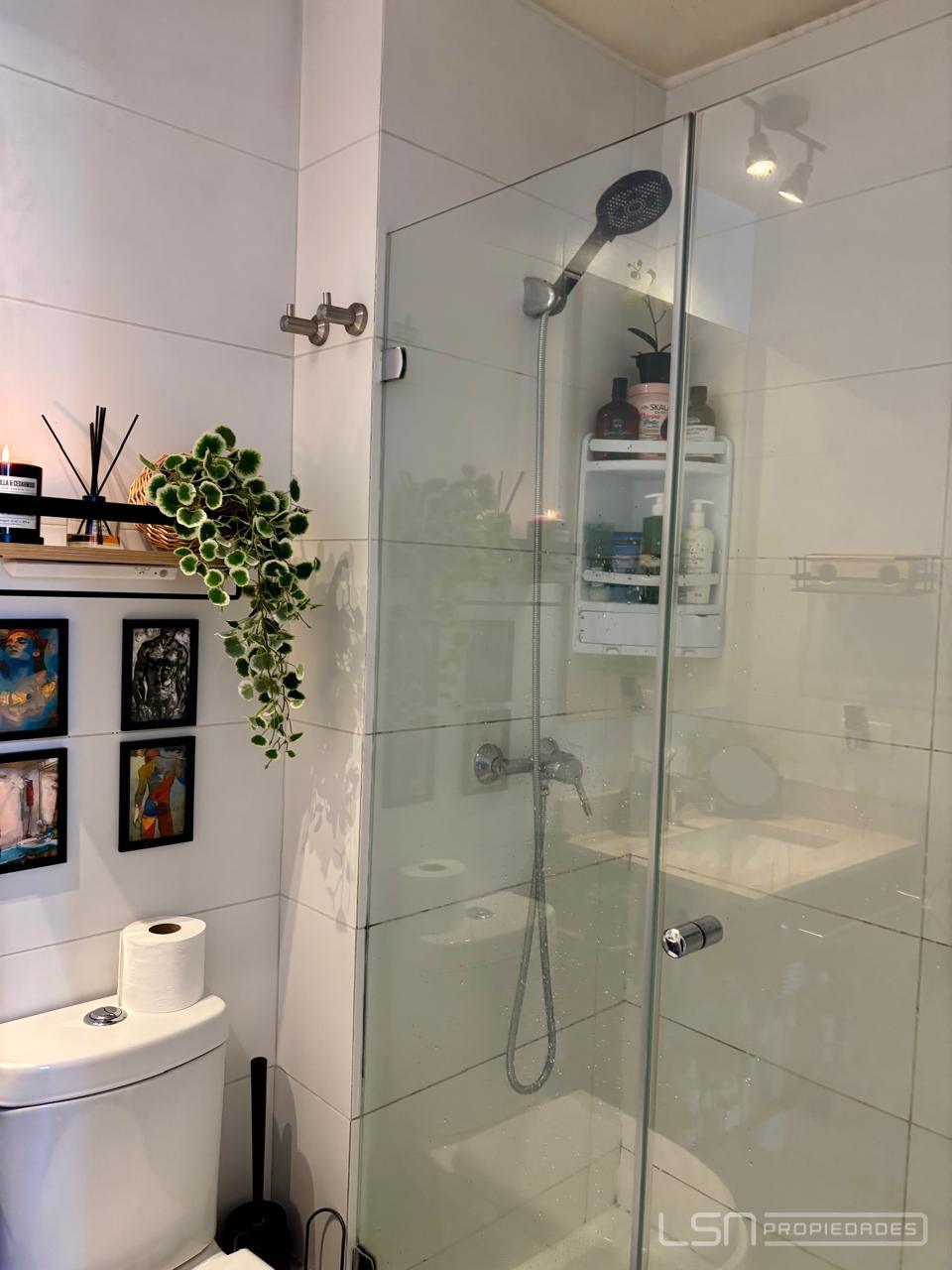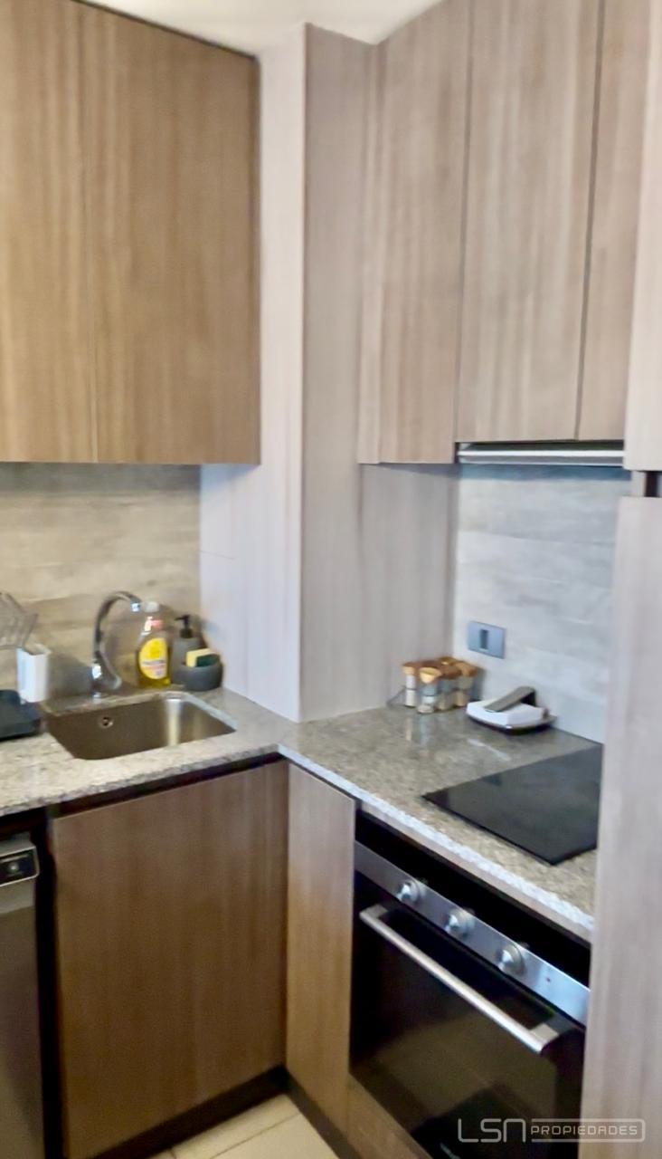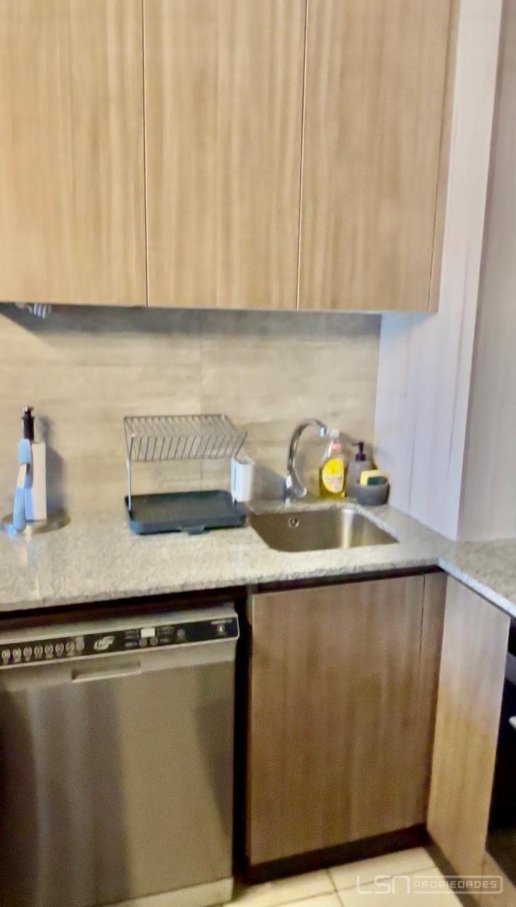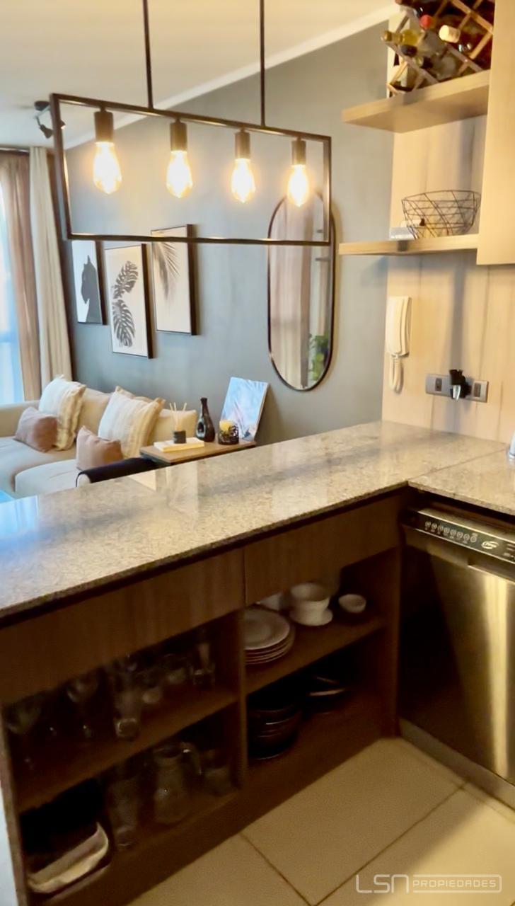 El inmueble cuenta con living-comedor y cocina integrada, equipada con horno eléctrico, encimera eléctrica y espacio habilitado para lavavajillas. Dispone de un dormitorio en suite y un baño con shower door, además de conexión para lavadora.