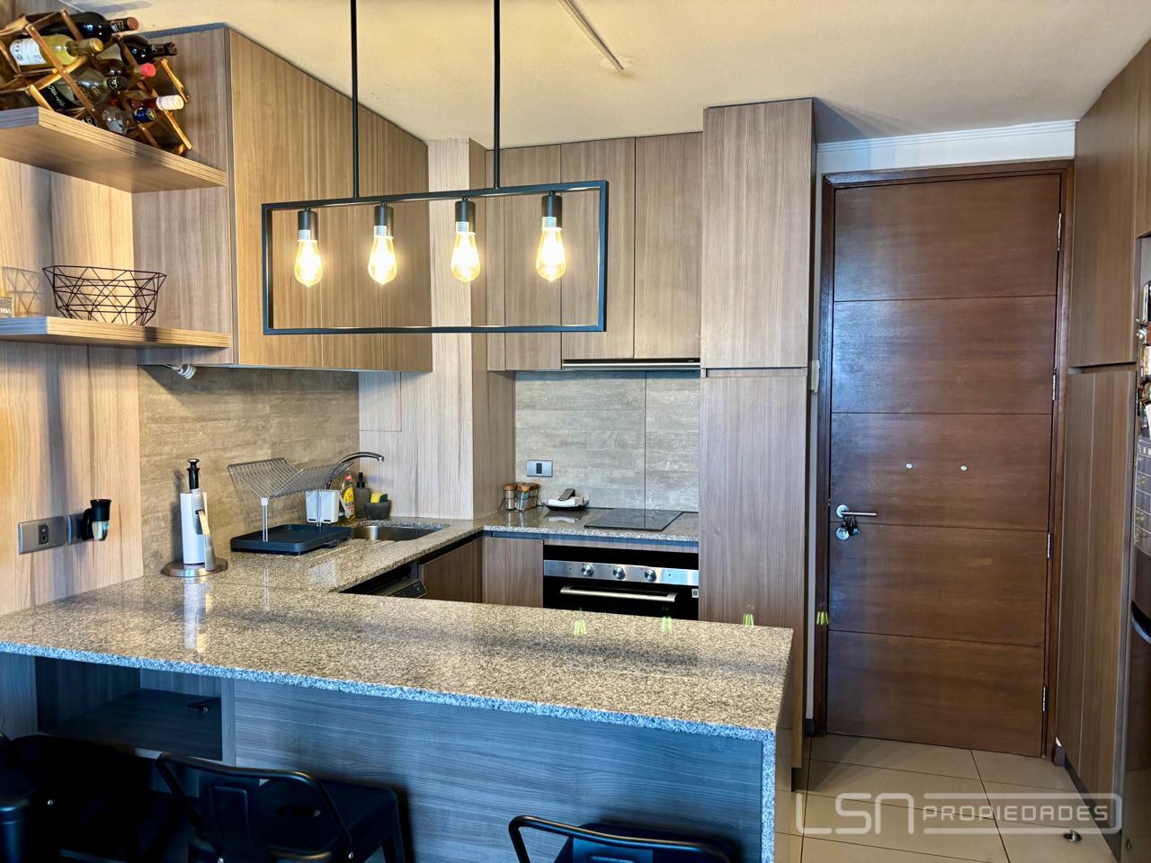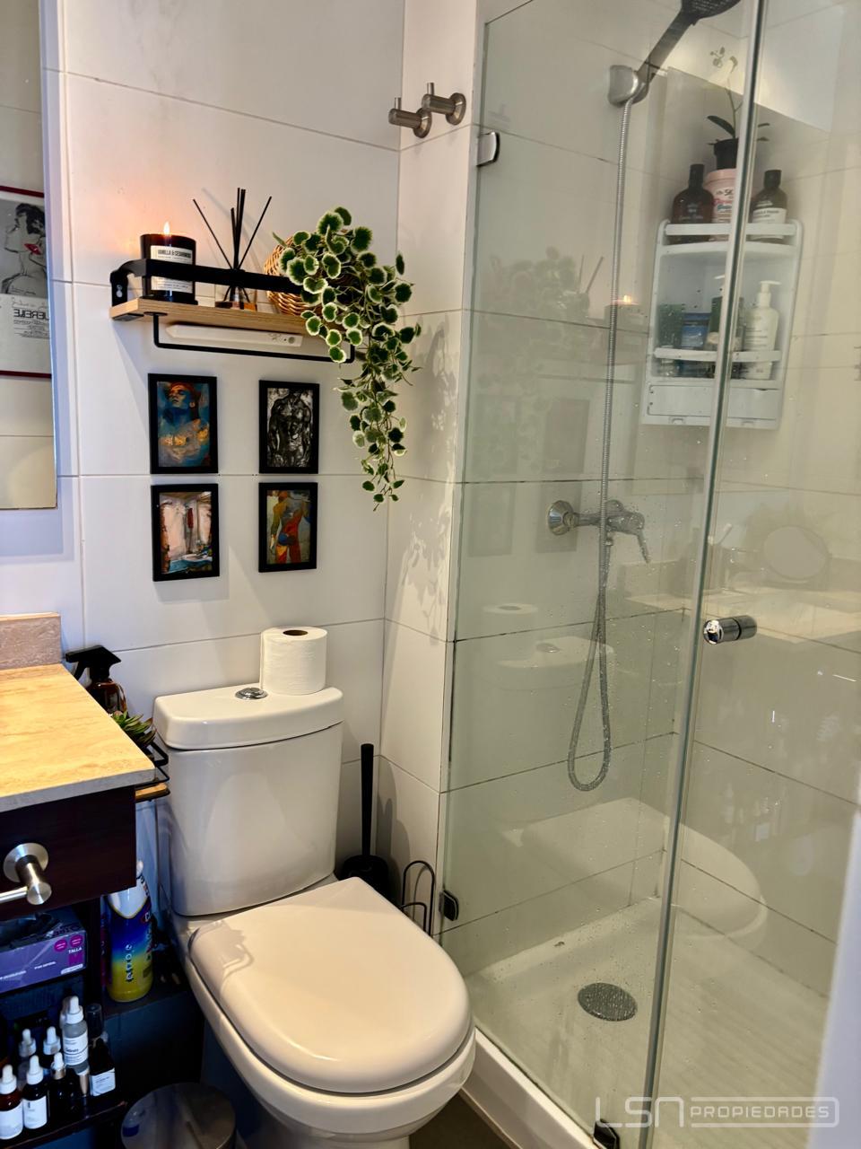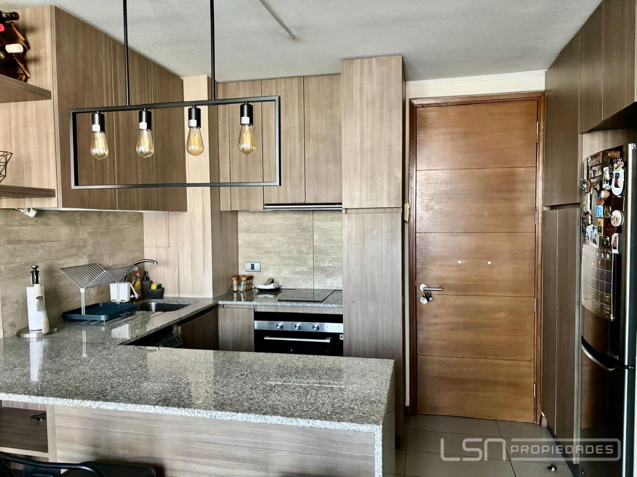 El inmueble cuenta con living-comedor y cocina integrada, equipada con horno eléctrico, encimera eléctrica y espacio habilitado para lavavajillas. Dispone de un dormitorio en suite y un baño con shower door, además de conexión para lavadora.