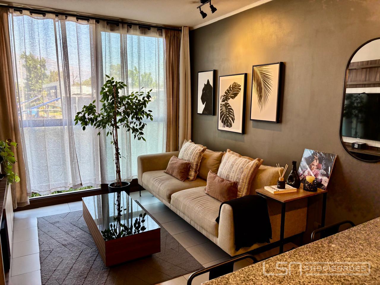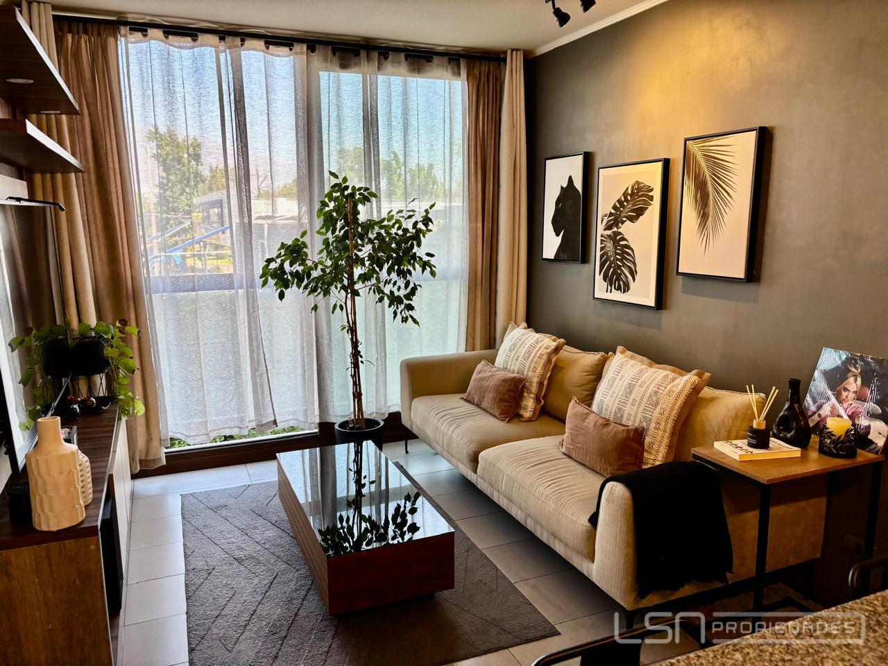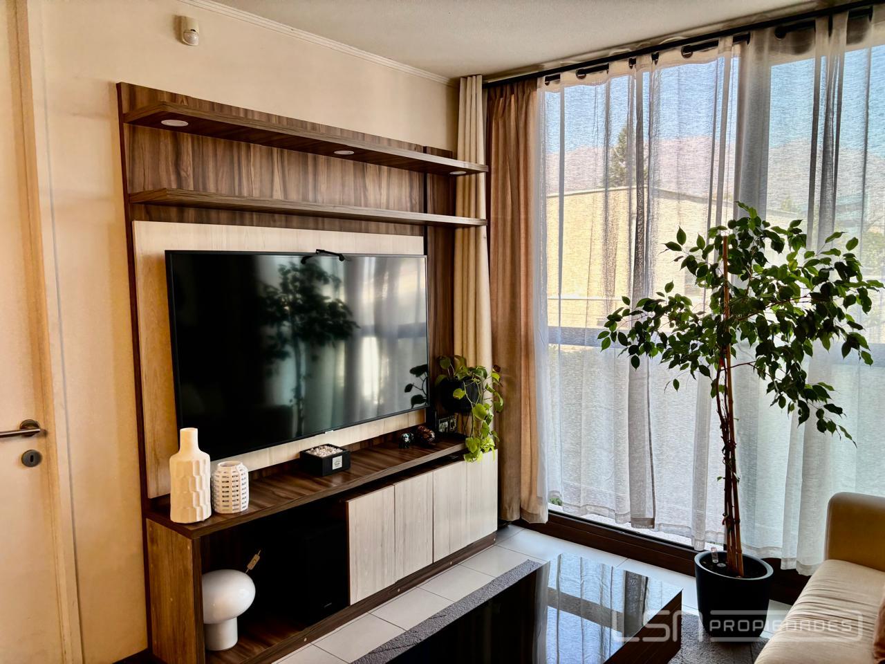 El departamento posee ventanas con termopanel. El dormitorio tiene alfombra, mientras que el resto de los espacios presenta terminaciones en porcelanato y cerámica, lo que aporta un diseño moderno y fácil mantención. La propiedad incluye un estacionamiento y una bodega.