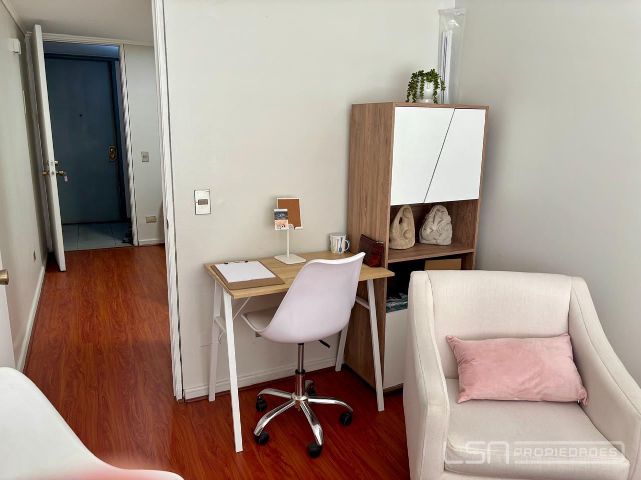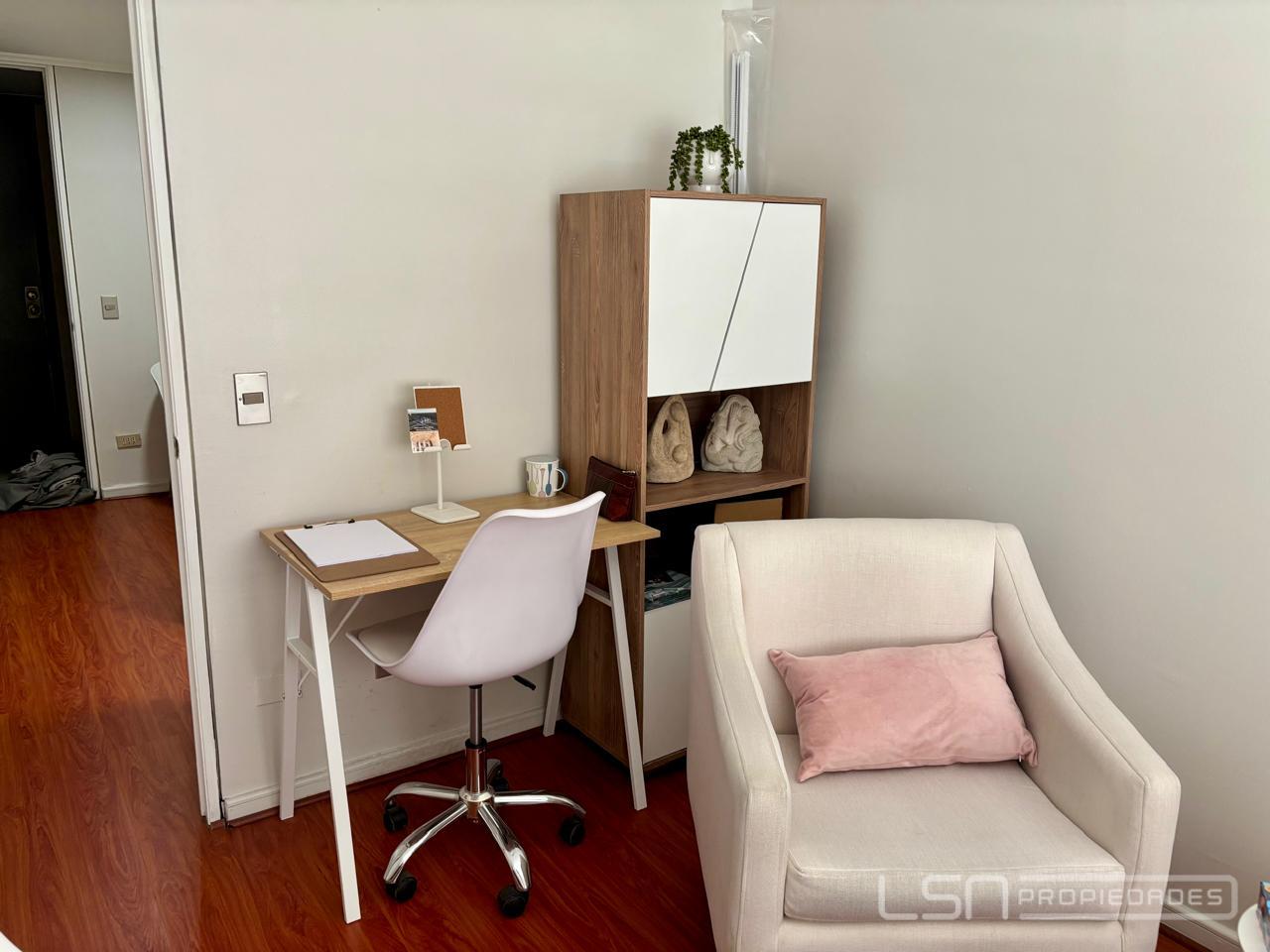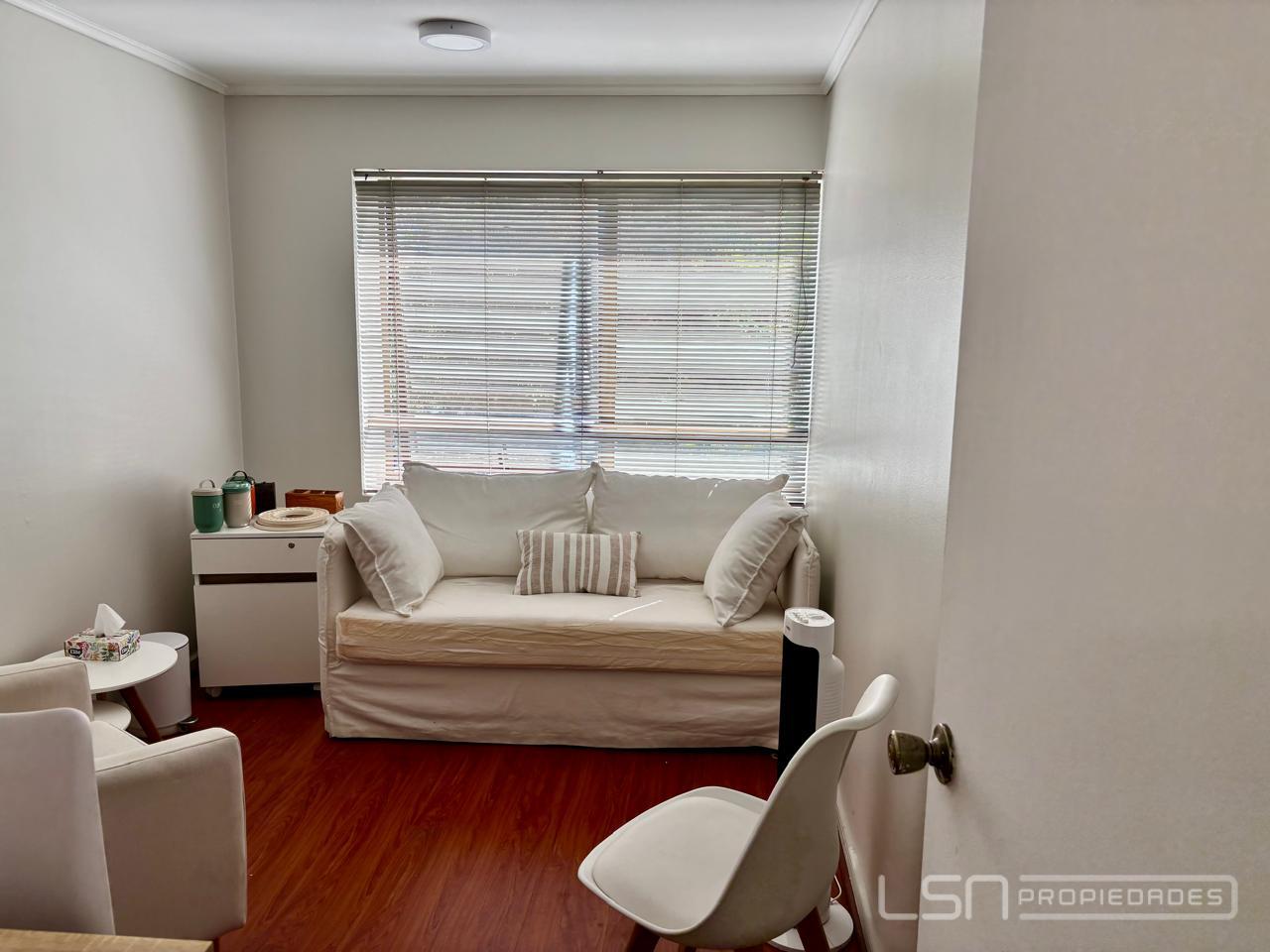 Excelente y luminosa oficina en prestigioso y estratégico sector Barrio El Golf, con inmejorable conectividad cercana a metro El Golf y metro Alcántara, bancos, notarías, entre otros servicios. La oficina se encuentra en el piso 4 del edificio Studio II, posee un privado, una recepción y un baño. Cuenta con piso flotante en toda la oficina. Ideal para inversionistas y/o emprendedores. El edificio posee seguridad 24/7, con sistema de cámaras y accesos controlados. Se incluye un estacionamiento subterráneo. Gastos comunes aprox. $68.000.